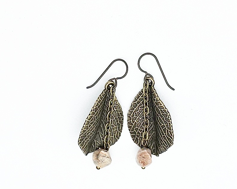 After starting with basic bead stringing, I have learned how to incorporate wire and sheet metal into my jewelry projects, including creating my own earring wires. My handcrafted original jewelry designs include necklaces, bracelets, and earrings, using mostly natural stone, glass, and metal. I am not a metal smith, but I flame color, paint, ink, stamp, emboss, and shape metal to create interesting additions to my designs. I am fascinated by the process and the results, and try to stretch my own limits with my current skill level using the tools I have available.