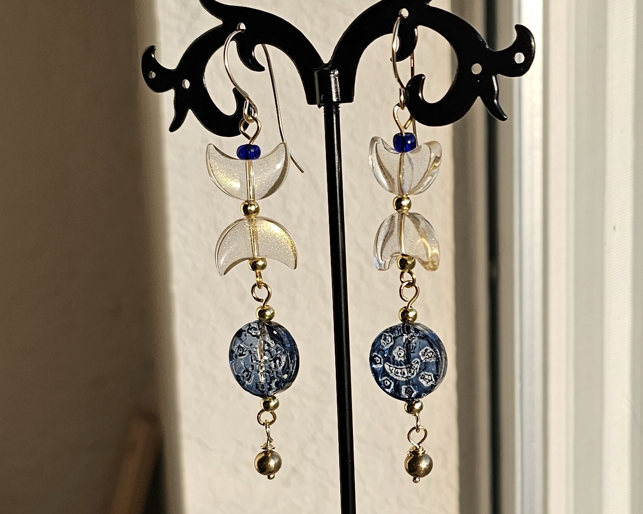Their length and movement make them a statement piece, while the glass beads catch light beautifully, evoking moonlight and starlight.