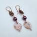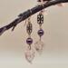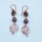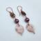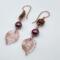 Also included are glass pearls in soft plum and detailed copper floral connectors. Together these elements create a vintage-botanical vibe. At 2.5 inches long, they shimmer as they move and attract the eye without being heavy.