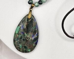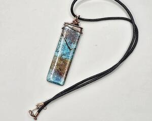 Dichroic Glass Pendant With Malachite, Lapis, Tiger Eye Beads